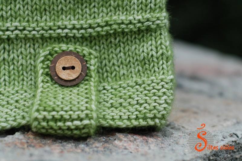 When I first time saw these green like moss Stone Washed balls of Canada Jade 806, I already knew, what result should be. I knew that the knit work would be for a little naughty boy. I knew this knit work would be free style and movements of a child would not be limited. Also the real brown buttons from coconut should be a necessary detail: some of them would fulfill their primary function when the others would stay just for better looking. I was a little bit afraid how to realize my ideas because Stone Washed was a cotton yarn and previously I did not like to join cotton yarns and needles, because the knit work after such experiments used to be too “fluid”.