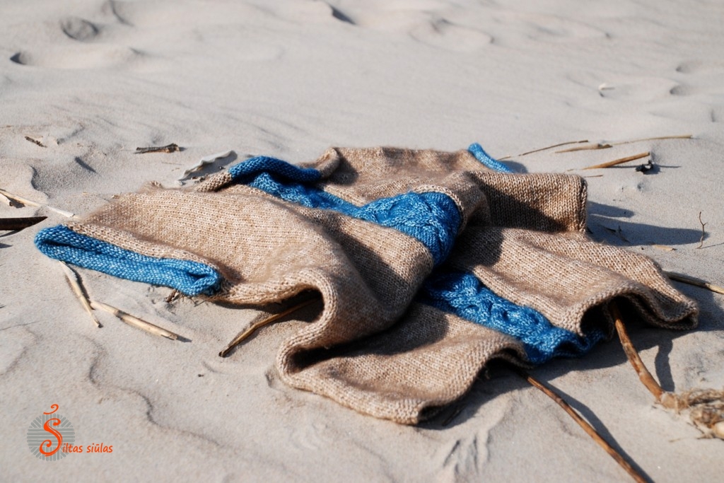 atostogas. Bet aš labai norėjau jam parodyti jūrą ir smėlį, nes jis pats man buvo toks į juos panašus: rusvas kaip pajūrio smėlio smiltelės su gaiviu vandens ruoželiu. Megzti buvo labai malonu. Kiek bandau šį Stone Washed siūlą, tiek jis mane vis maloniai nustebina. Šį kartą puikiai atlaikė pynių išbandymą. Nors šie siūlai patenka į medvilninių siūlų kategoriją, pynės šiame megztuke buvo visiškai nepanašios į “medvilnines“, atvirkščiai, savo purumu, tamprumu, iškilumu jos labiau priminė pyniuoto vilnonio megztinio detalę. Ir tas labai džiugino, nes mezgant buvo malonu rankoms, o žiūrint į rezultatą – akims.