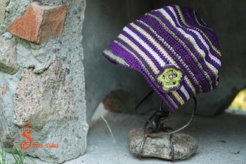 So my eyes were running in the yarn basket and the head was trying to think about something simple and easily done. I wanted to find a simple, nice and suitable for holidays crochet idea, whict would not force me to count stitches and follow difficult schemes all the time. And as you know, when you are thinking very intensive, the idea sooner or later comes. So after a few days I was holding a simple cozy little child scarf for the coming autumn: one dark purple color from Cotton 8 (color 721) yarns was periodically repeating one and the same chord, and the other color from Larra Batik (color 7507) was merrily sounding with all its best notes. Both colors from Scheepjeswol yarns were subtle changing each other, my eyes were enjoying their beautiful cooperation while the fingers of my feet were smoothing the sand. The sea, summer and holidays were all around me!