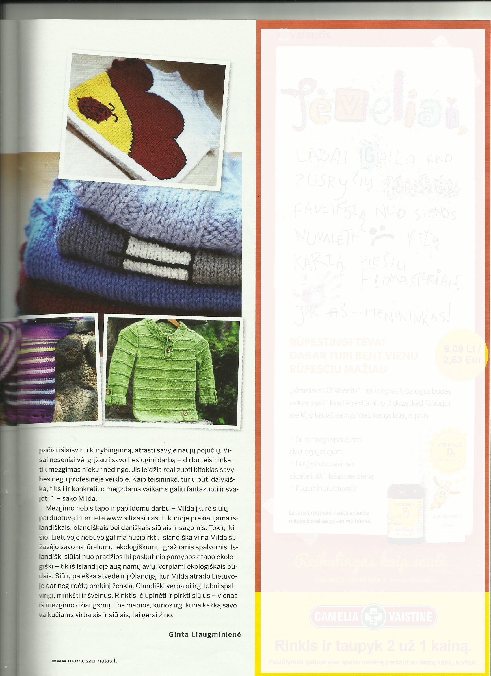 Be galo smagu, kai mylimas pomėgis ir įdėtas darbas nelieka nepastebėti. Šiandien nuo ryto vaikštau su didele šypsena, nes “Mamos žurnalas“ spalio mėnesio numeryje rašo apie mane, kuriamus vaikiškus mezginukus ir mano “Šiltą siūlą“ (spustelėjus ant nuotraukos ir ją dar padidinus, tekstas tampa lengvai įskaitomas)