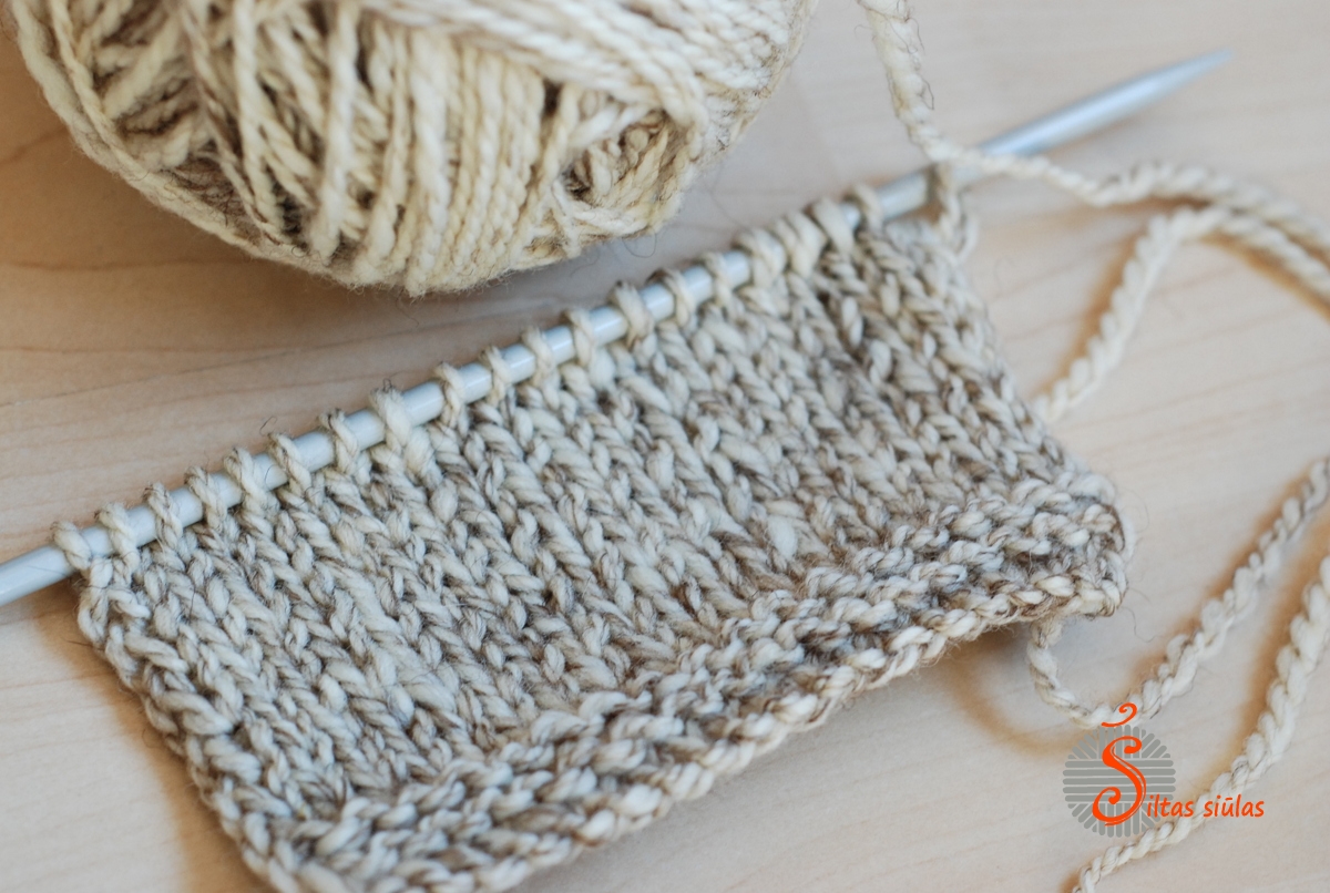 Prieš pradedant megzti, savo kamuolį pervyniojau “atgal“, nes norėjau mano būsimo mezgtukos apačią pradėti ties ruda spalva. Tad numezgus gerą sprindį mano siūlų ruda spalva ėmė mirgėti ir po truputį ėmiau artėti melanžinio gražumo link. Kaip mezginys keisis ir kas iš viso to išeis, matysime vėliau. Bet galiu garantuoti, kad megzti iš šių siūlų yra be galo įdomu!